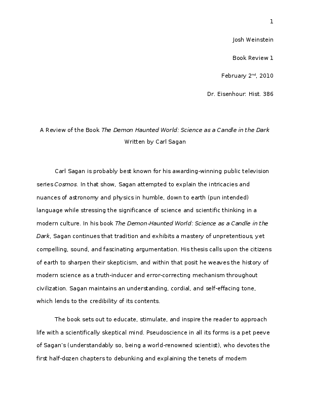 Doc A Review Of Carl Sagan S The Demon Haunted World Science As A Candle In The Dark Joshua Weinstein Academia Edu