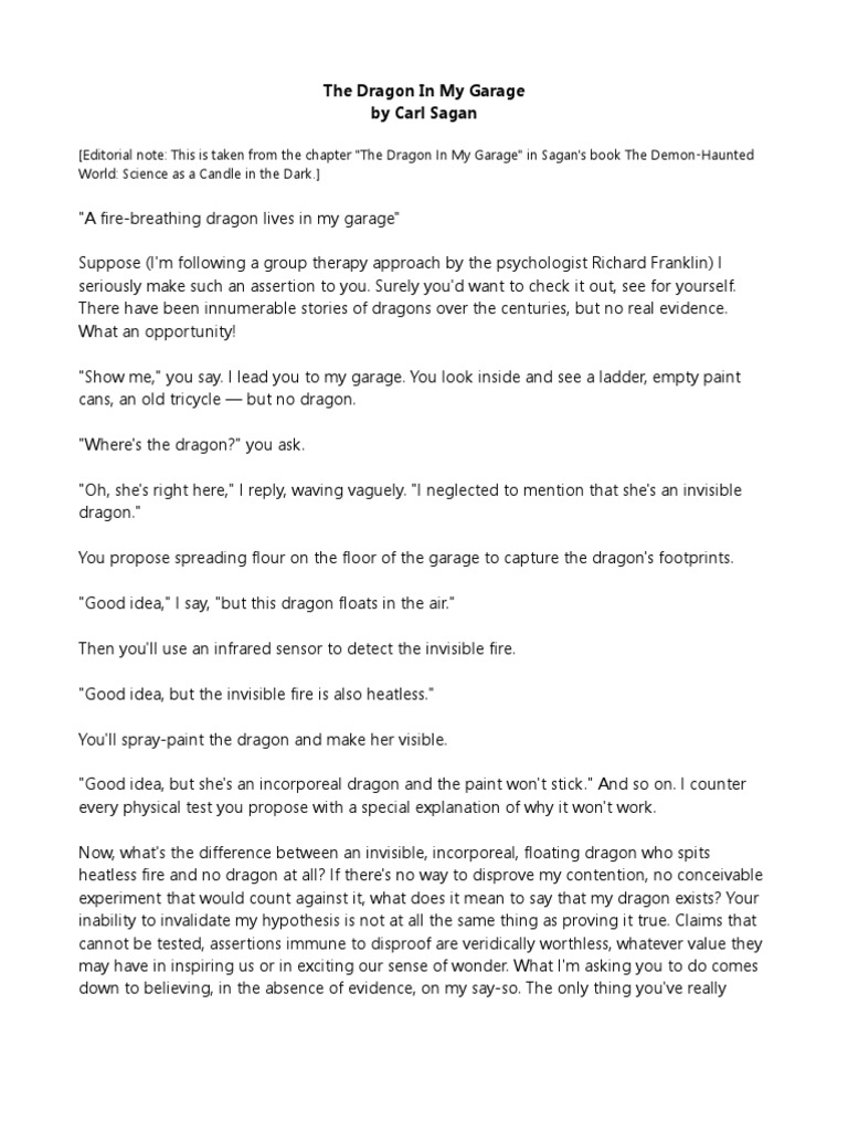 Carl Sagan The Dragon In My Garage From The Demon Haunted World Science As A Candle In The Dark 1997 Science