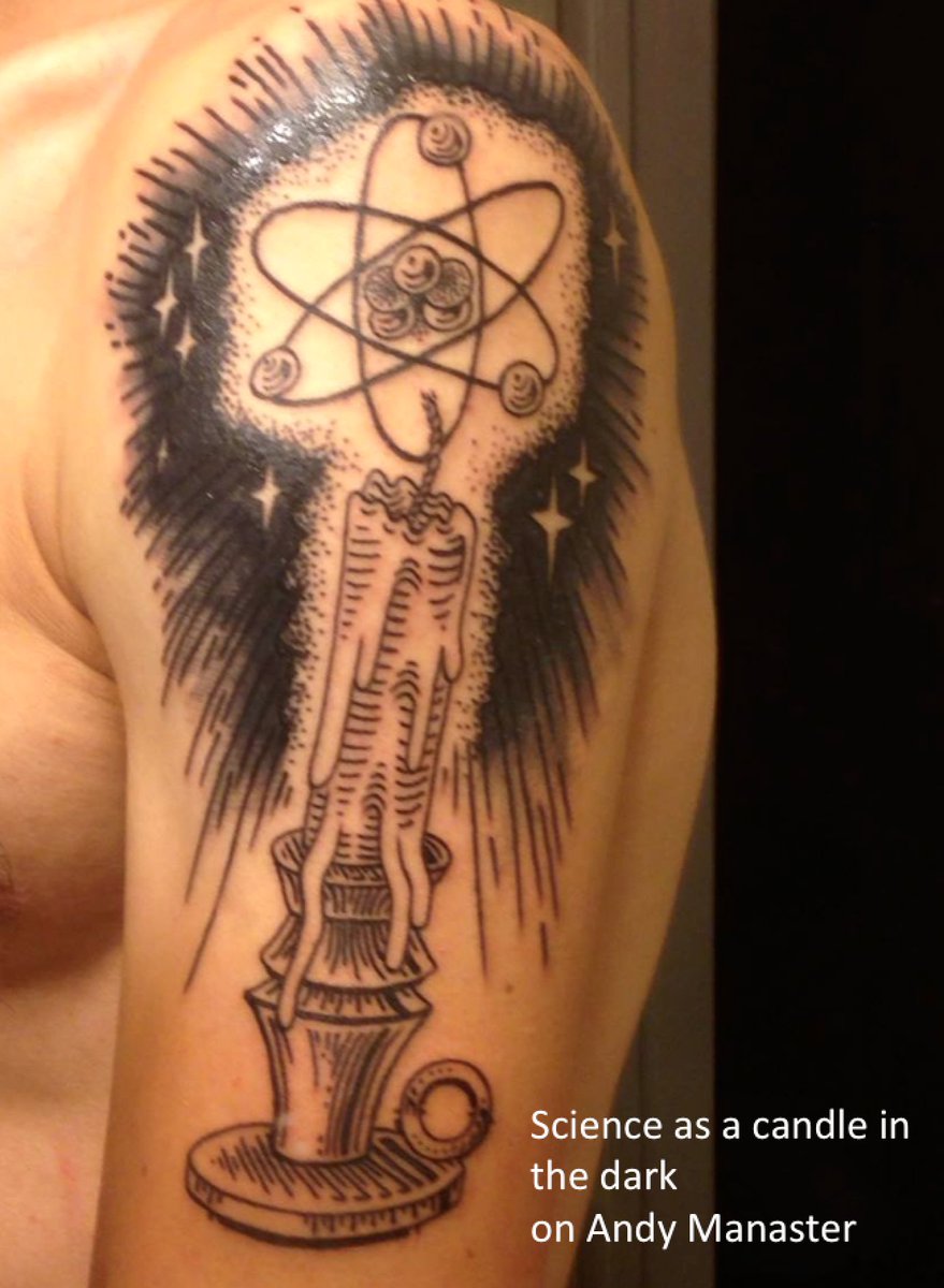 Joanne Manaster On Twitter For Those Who Haven T Seen Before This Is One Of His Tattoos Inspired By Carl Sagan S Demon Haunted World Science As A Candle In The Dark Andy Takes