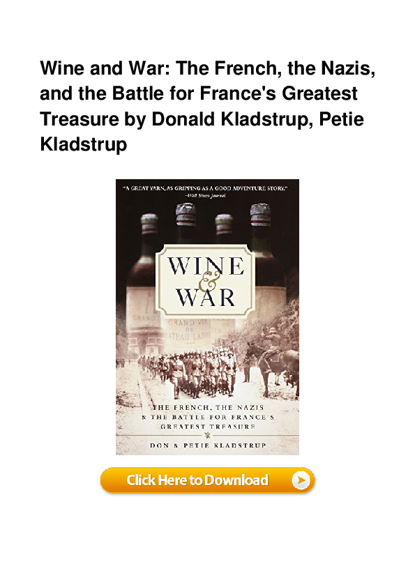The french the nazis and the battle for frances greatest treasure paperback april 30 2002 by donald kladstrup author petie kladstrup author 46 out of 5 stars 420 ratings. Broadway 24 304p isbn 978 0. Wine and war combine in this remarkable untold story of frances courageous clever vintners who protected and rescued the countrys most treasured commodity from german plunder during the second world war. To quell the chaos and to streamline the transfer of wine from france to.
