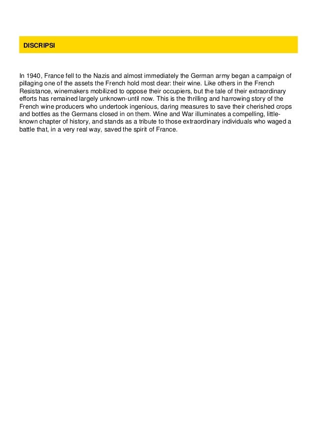 Wine war frances greatest treasure. Buy wine and war. The french the nazis and the battle for frances greatest treasure paperback april 30 2002 by donald kladstrup author petie kladstrup author 46 out of 5 stars 486 ratings. Drinking nazi lout according to wine and war. 304 pages 822 x 551 x 064 in published.